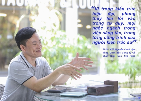 KTS. Nguyễn Cao Luận: Tôi cho rằng những ai làm kiến trúc đều có cơ duyên với phong thủy. Chỉ có điều người ta có cảm nhận và hướng tới nó hay không. Bởi vì trong kiến trúc hiện đại, phong thủy len lỏi vào mọi tư duy, mọi ngóc ngách của việc sáng tác, trong từng công trình của người kiến trúc sư.